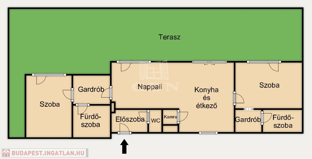 -Mindkét hálóhoz saját gardrób és külön fürdőszoba tartozik (egyik káddal, másik zuhanyzóval), valamint közvetlen teraszkijárattal
