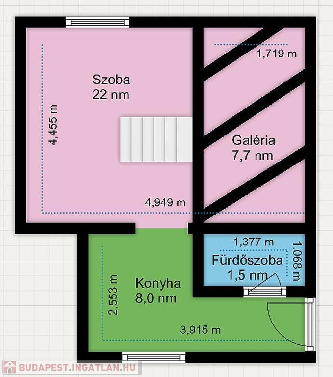 Belmagasságából adódóan a hasznos alapterület galéria kialakításával tovább növelték.