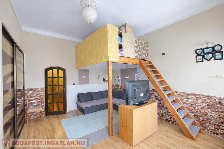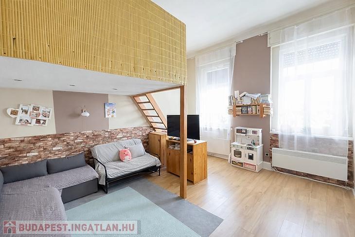 A lakás belmagasságának köszönhetően már kialakításra került galéria, illetve a tetőtér beépítése is elkezdődött (szigetelés + gipszkarton).