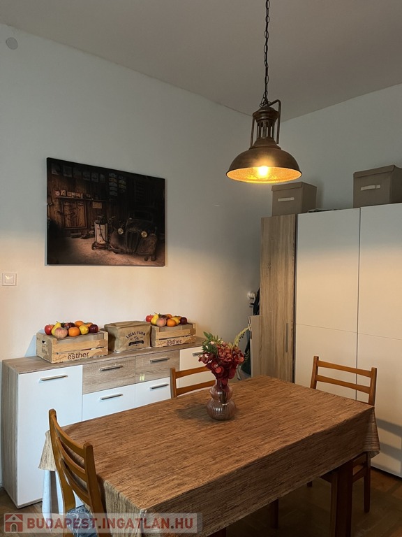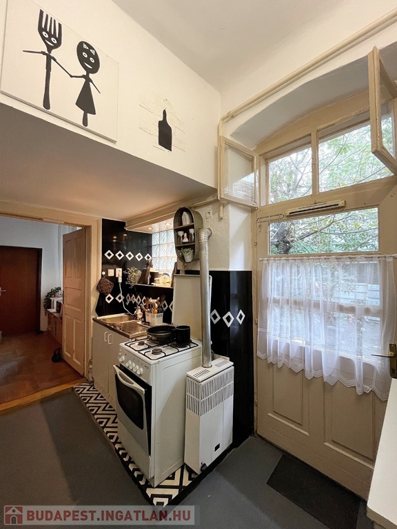 A lakás keleti fekvésű, belmagassága 3,15 méter, jelenlegi fűtését gázkonvektorok biztosítják. A nyílászárók műanyagok, 3 évvel ezelőtt cserélték őket. A konyha beépített bútorral rendelkezik, a fürdő zuhanyzós kialakítású. A lakáshoz praktikus kamra is tartozik, valamint 4 különálló udvari tároló és egy saját pincehelyiség is rendelkezésre áll.