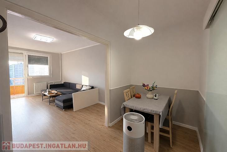 Az Újpesti Bíróság közelében, kiváló közlekedés mellett, liftes társasház VIII. emeletén, eladásra kínálunk, egy 53 nm-es, 2 szoba+hallos elosztású, jó állapotú, kétfekvéses, erkélyes panellakást.
