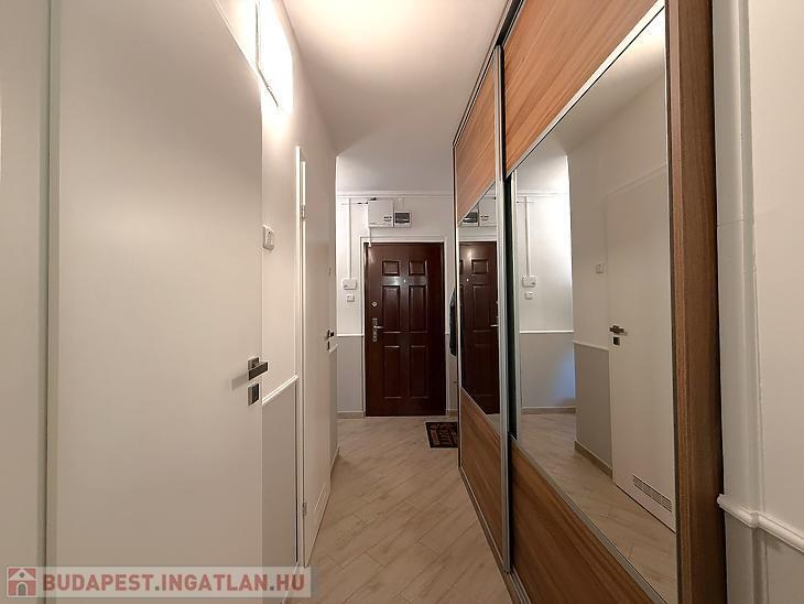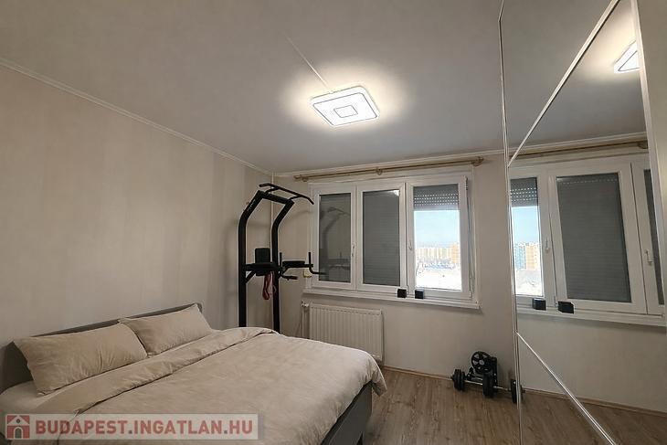 A lakásba több ponton záródó, biztonsági bejárati ajtót, modern beltéri ajtókat, valamint redőnnyel és szúnyoghálóval felszerelt, műanyag keretes, thermo üveges nyílászárókat építettek be. A szobákban laminált padlót helyeztek le, a többi helyiséget járólappal burkolták. A fűtőtesteket korszerűsítése is megtörtént, ezeket egyedi hőmennyiségmérővel látták el. Az elszámolás fogyasztás alapján is történhet, a jelenlegi átalánydíj 7.473.- Ft. Konyhája nagy ablakos, világos, a konyhabútor és a két gardróbszekrény a vételár részét képezi.