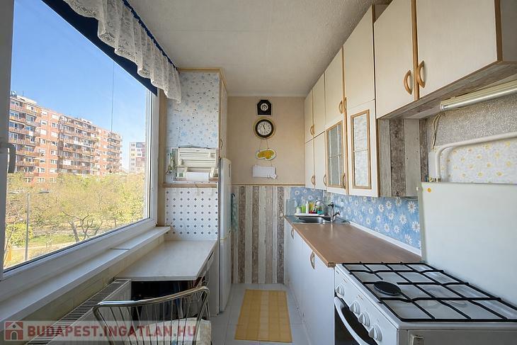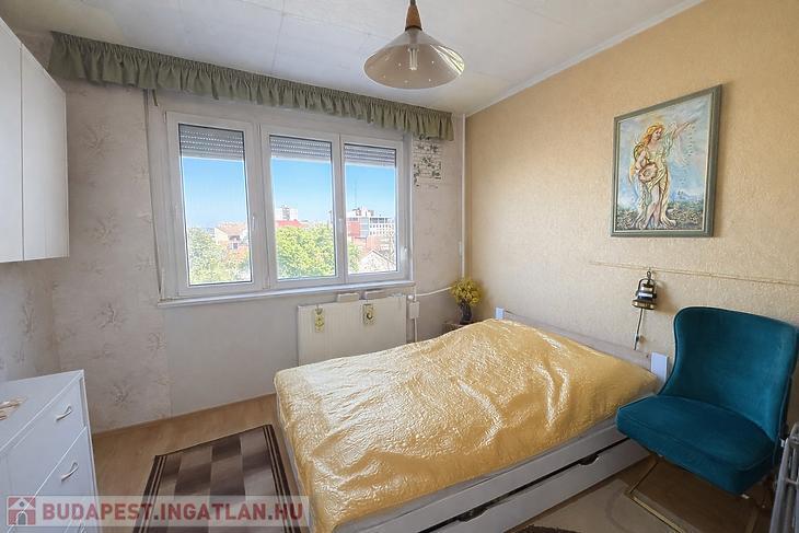 Újpest-központ közelében, csendes, parkos környezetben, liftes társasház III. emeletén kínálunk megvételre egy 60 nm-es, 2+1 félszoba + hallos elosztású, kétfekvéses, erkélyes panellakást, beköltözhető állapotban.