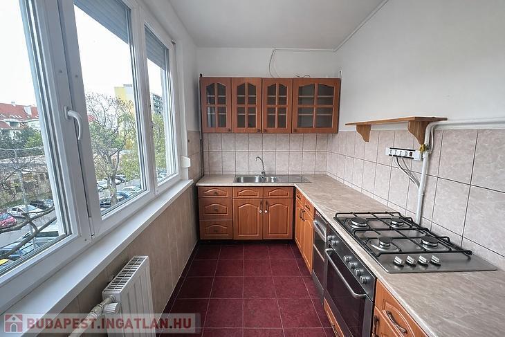 Az Újpesti Bíróság közelében, kiváló közlekedés mellett, liftes társasház III. emeletén kínálunk megvételre egy 60 nm-es, 2+1 félszoba + hallos, jó állapotú, kétfekvéses, erkélyes panellakást.