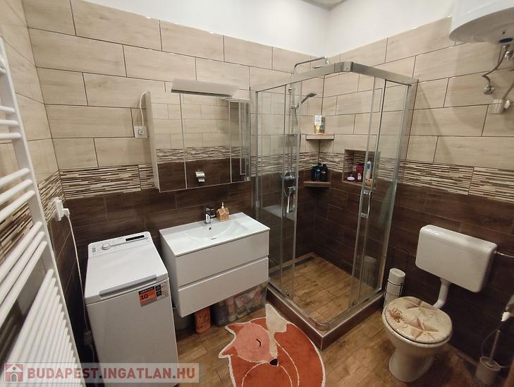 A lakás felett megtörtént a cserepek és a teljes tetőszerkezet cseréje és szigetelése, valamint részben a víz és villanyhálózat korszerűsítése. Több ponton záródó biztonsági bejárati ajtót, valamint redőnnyel és szúnyoghálóval felszerelt fa keretes, thermo üveges nyílászárókat építettek be, ez alól kivételt képez a nappali, ott még a régebbi fa keretes ablakok vannak. A szobákban fa parketta található, a többi helyiséget járólappal burkolták. A fűtésről gázkonvektor, a melegvíz ellátásról villanybojler gondoskodik. Az elszámolás fogyasztás alapján is történhet, a jelenlegi átalánydíj 14.000.- Ft/hó. A nagyobb komfortérzet kialakítása érdekében a hálószobába felszerelésre került 1 hűtő-fűtő inverteres légkondicionáló berendezés is.