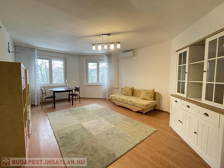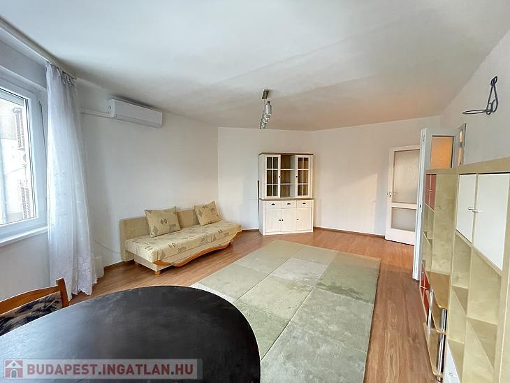 Káposztásmegyer I.-en, három emeletes cseréptetős társasház II. emeletén, 65nm-es 1+2félszobássá alakított, KLÍMÁS lakás eladó. Az ingatlan közepes-jó állapotú, a nappali és az előszoba laminált parkettás, a két félszoba padlószőnyeges, a fürdőszoba járólapos, a konyha pedig vinyl burkolatot kapott. A nyílászárók műanyag thermo üvegesek, redőnyösek, szúnyoghálósok. A konyhabútort, a radiátorokat, illetve a félszobákban a belső ajtókat kicserélték. A fürdőszobát megnagyobbították, zuhanyzót és kádat is beszereltek. A bejárati ajtó több ponton záródó biztonsági. A beépített bútorzat a vételár részét képezik. A lakáshoz tartozik egy közös 20nm-es tároló is. Tehermentes! A környék ellátottsága kiváló, iskolák (Babits Mihály Gimnázium, Karinthy Frigyes Magyar- Angol Két Tanítási Nyelvű Általános Iskola), óvodák, sportolási lehetőségek (Jégpalota, Uszoda), számos bevásárlási lehetőségek elérhetőek. 14-esvillamos megállója pár perc sétára található, amellyel Újpest központ metrómegálló rövid időn belül elérhető! A hirdetésben szereplő adatok tájékoztató jellegűek!