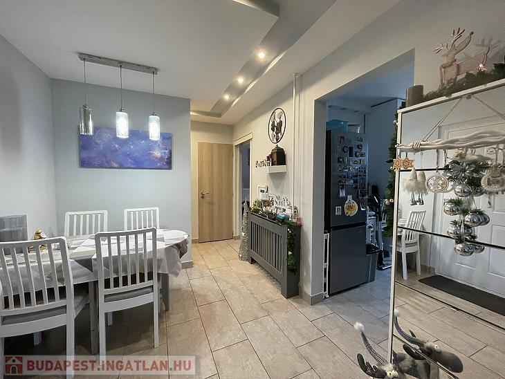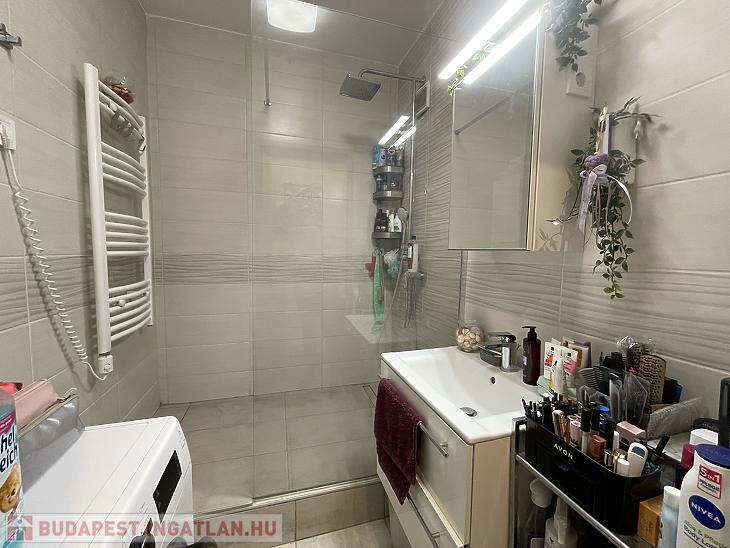 Az ingatlant 2019.-ben teljeskörűen felújították. A villany-vezetékeket áthúzták, a nyílászárók műanyag thermo üvegesek, redőnyösek, szúnyoghálósok. A szobák laminált parkettások, a többi helyiség járólapos, a radiátorokat, a belső ajtókat és a beépített szekrényt kicserélték. A konyhabútort modernizálták, kibővítették és gépesítették. A fürdőszobában épített zuhanyzót alakítottak ki, új szanitereket és törölköző szárítót szereltek be. A nappali és a hall SPOT lámpás világítást kapott, a bejárati ajtó több ponton záródó biztonsági. A beépített bútorzat a vételár részét képezik. Tehermentes! A lakáshoz tartozik egy közös, 40nm-es tároló is.