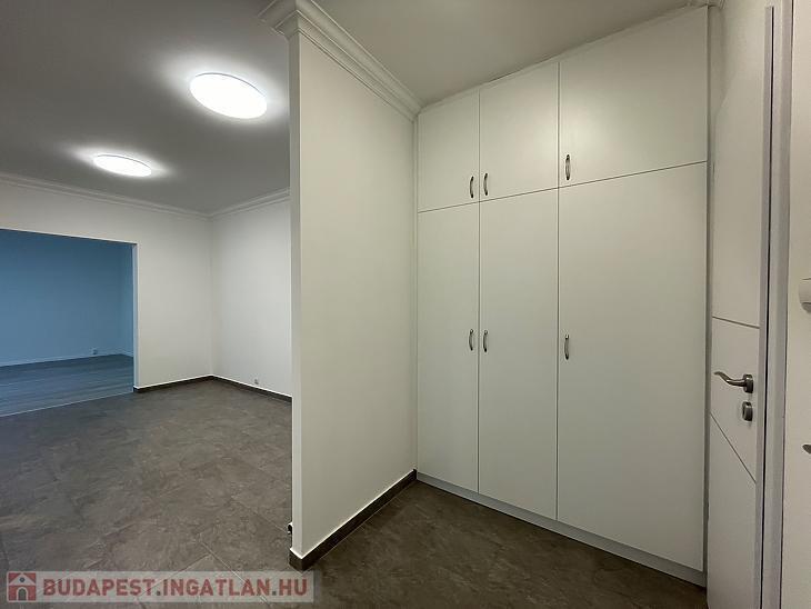 Az ingatlant 2024.-ben teljeskörűen felújították, a víz-villany vezetékeket áthúzták, az ablakok műanyag thermo üvegesek, redőnyösek, szúnyoghálósok, a szobák laminált parkettásak, a többi helyiség járólapos. A konyhabútor gépesített, (indukciós főzőlap, sütő, mosogatógép, mikró, szagelszívó) a belső ajtókat, a fürdőszoba és a wc burkolatait kicserélték, illetve új szanitereket és zuhany kabint szereltek be. A bejárati ajtó több ponton záródó, biztonsági. A beépített szekrény, a gépesített konyhabútor és a mosógép, a vételár részét képezik.