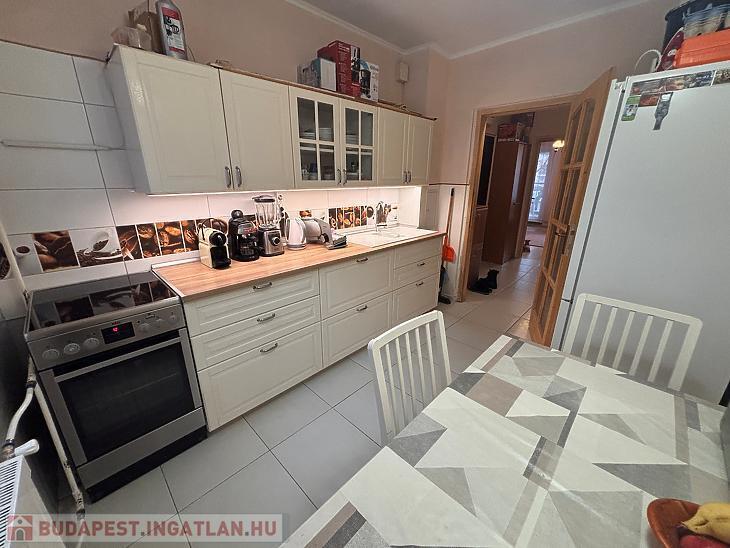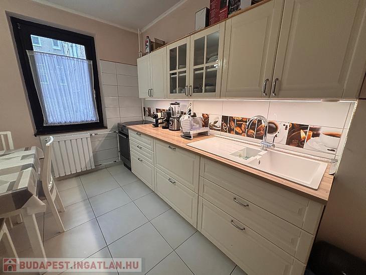 Az ingatlan jó-felújított állapotú, a villany-vezetékeket részben áthúzták alumíniumról rézre, új biztosító dobozt szereltek fel. Az ablakok műanyag thermo üvegesek (konyhában és a kisebb szobában fa típusú thermo üvegesek, hálóban redőnyös). A szobák laminált parkettások, a többi helyiség járólapos, a a wc és a fürdőszoba új burkolatot, kádat és szanitereket kapott. A konyhabútort, a víz-vezetékeket, a belső ajtókat és a radiátorokat kicserélték. A bejárati ajtó több ponton záródó, biztonsági. Tehermentes!
