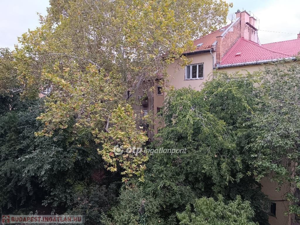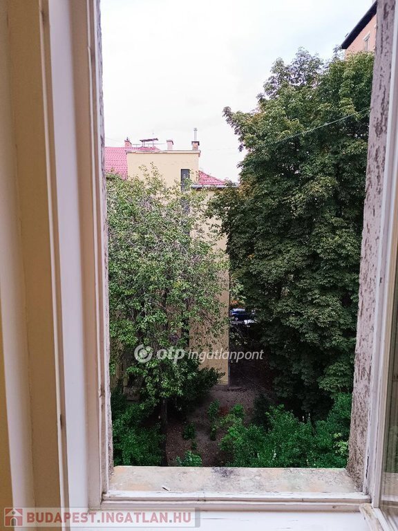Konyhából nyíló 1,5 m2-es erkély zöld, fás belső udvarra néz
