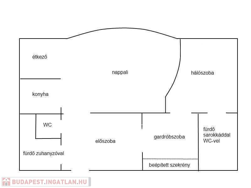Az előszobából nyílik egy kisebb, zuhanyzós fürdőszoba, mellette külön helyiségben található a WC.