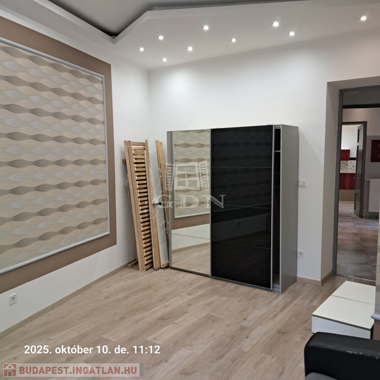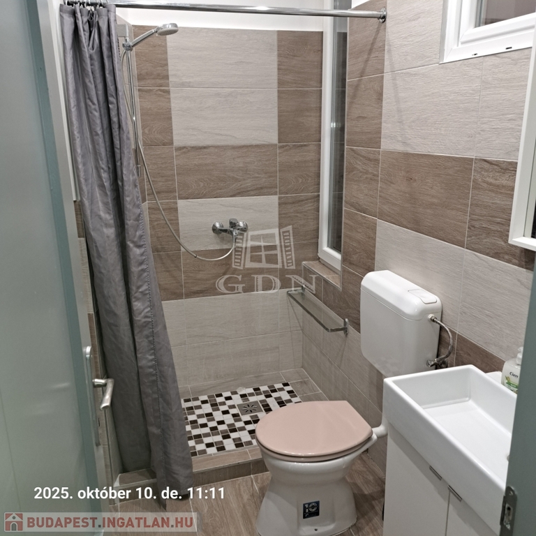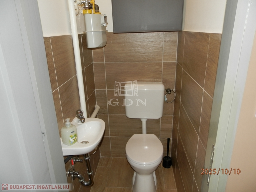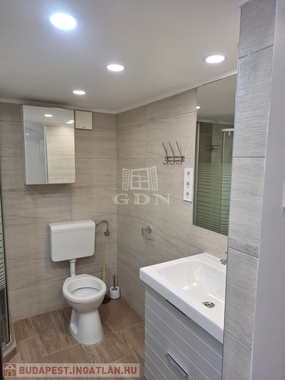 A 58 m²-es lakás tágas, világos, két fürdőszobás, akár két külön bérlő számára is ideális.