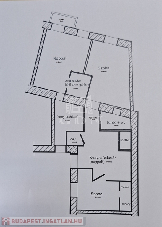 A 33 m²-es garzon galériázott, erkélyes, gépesített konyhával – tökéletes kis városi kuckó.