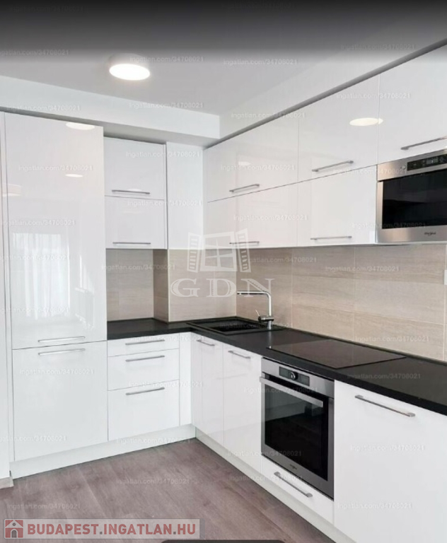 A konyha teljesen gépesített, újonnan beépített, Whirlpool márkájú minőségi berendezésekkel: sütő, főzőlap, mikró, hűtő és mosogatógép is rendelkezésre áll – így az új tulajdonos azonnal használatba veheti.
