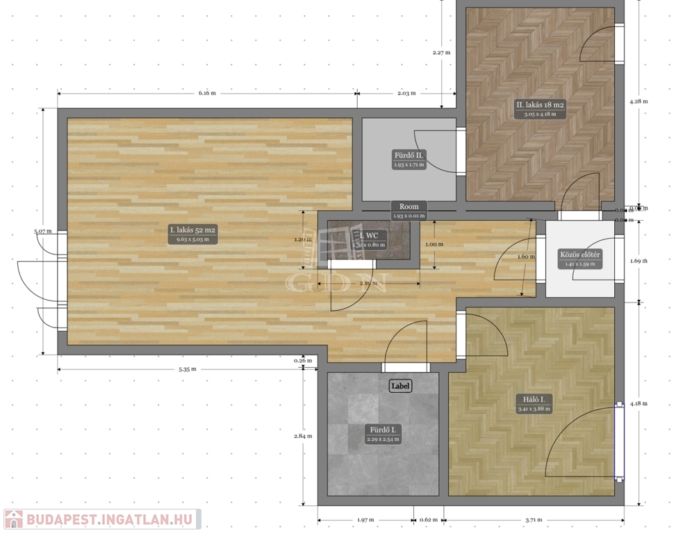Az ingatlan jelenleg két különálló lakóegységből áll, de igény esetén átadásig visszaalakítjuk nappali + 2 hálós lakássá.