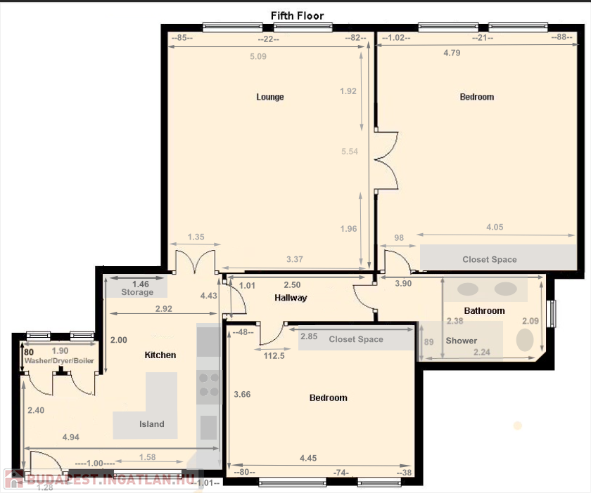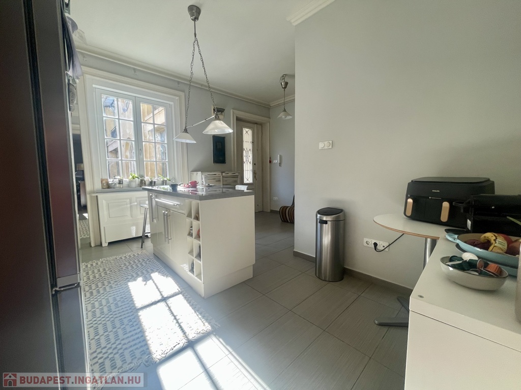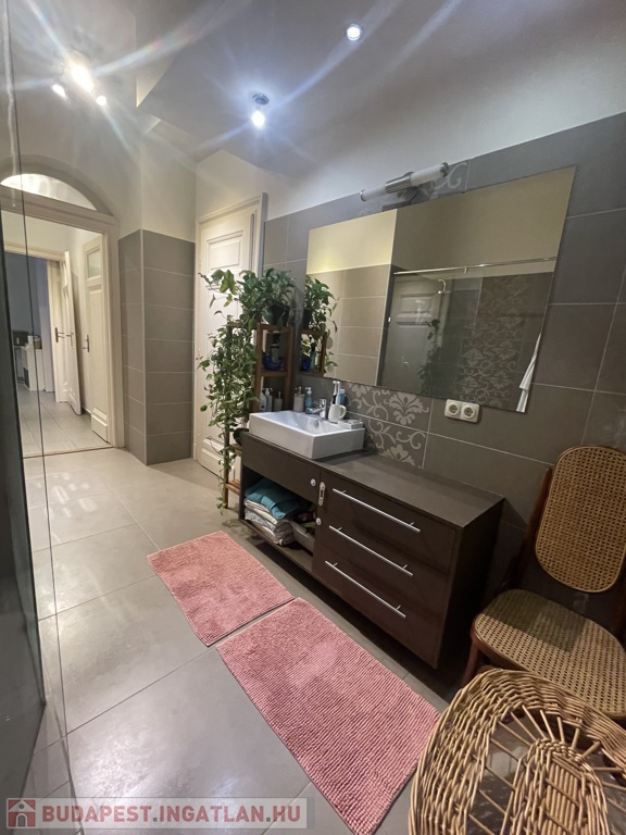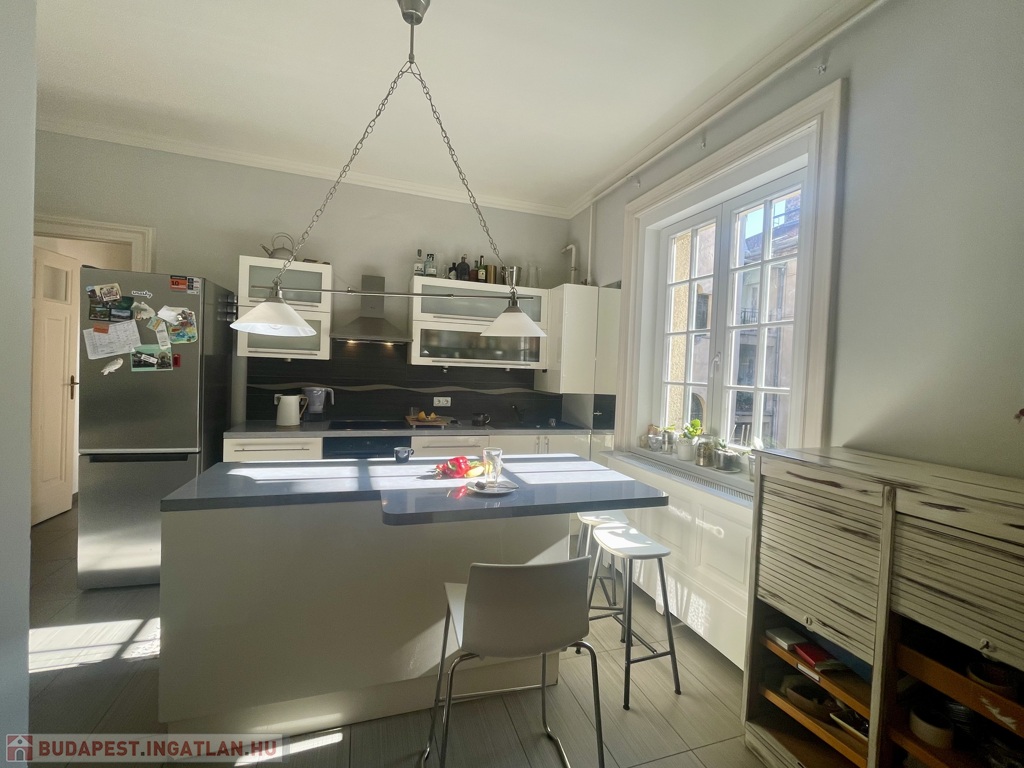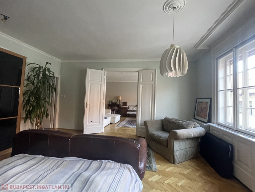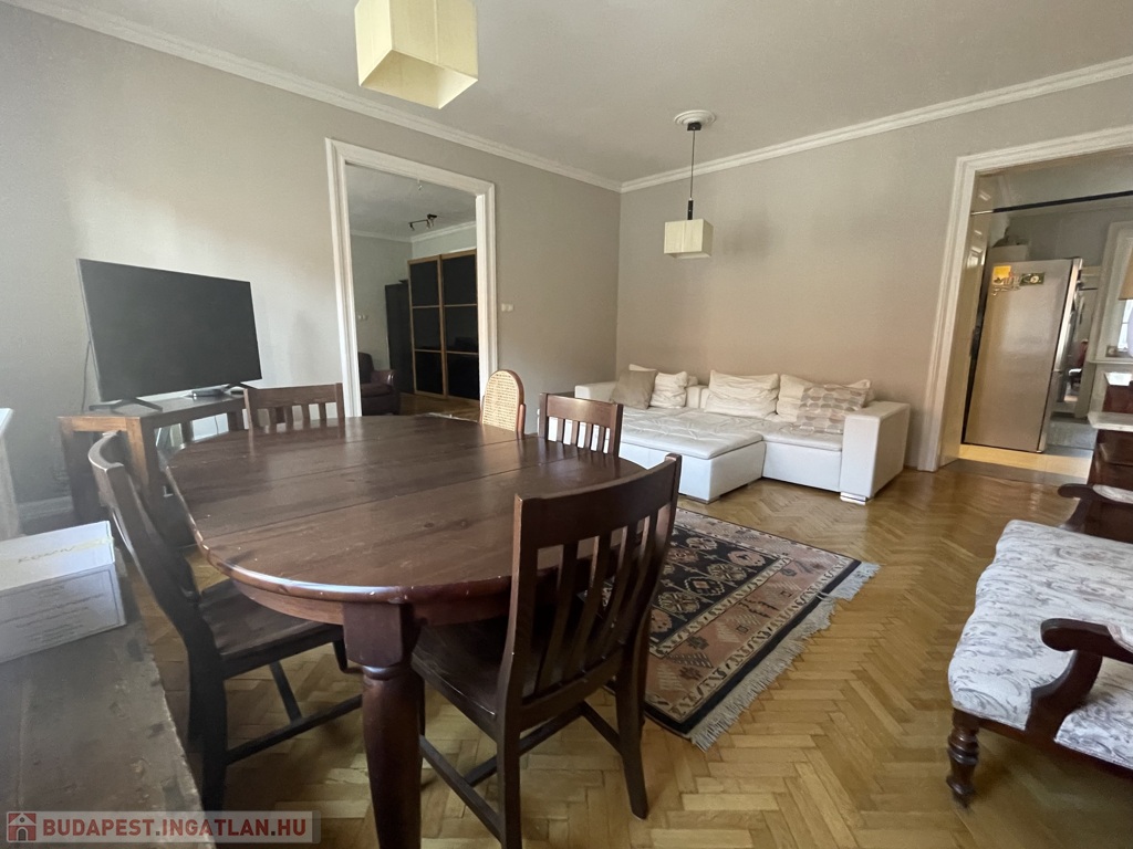 In Kinizsi Street, 9th district of Budapest (on the corner of Ráday Street), a 99 m2, 2-bedroom, well-proportioned, upper-middle-class apartment is FOR SALE ina good condition. (Living room 28.5m2, large bedroom 26.5m2, small bedroom 16.5m2). The property is on the 5th floor in an old apartment building, facing the street. The apartment has walk-around, bright, spacious spaces, cassette windows, original old interior doors and original parquet. The property underwent a complete mechanical and aesthetic renovation ten years ago, during this time it was transformed into a youthful, modern and fully mechanized home that meets today's needs. A storage room was created next to the hallway and kitchen, where the shoe cabinet, boiler and washing machine are located behind a nice cassette door.