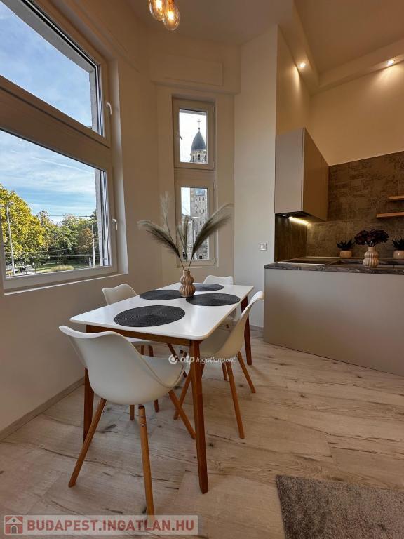 IX. kerület, Haller parknál ELADÓ 108 m2, I. emeleti lakás, melyben 3 db egyedi, különálló, berendezett, gépesített garzonlakás került kialakításra. Ez a lakás tökéletes választás befektetésnek. Az épület külső homlokzata és a pince is felújítása már megtörtént, a közös területeken pedig a villany-, víz- és gázhálózat is megújult. A lift és a belső udvar tovább növeli a lakók kényelmét. A 3 lakrész ügyvédi megosztással rendelkezik. A lakások felszereltsége: - Konyhabútor, kanapé, asztal, étkező és franciaágy, - Teljes gépesítés (Ariston Wellis Evo boylerrel), - Hűtő-fűtő klíma, - Norvég fűtőpanel. A három kialakított lakás: 1-es számú lakás: 35 m2, plusz 3 m2 erkély és 5 m2 galéria, 2-es számú lakás: 38 m2, plusz 5 m2 saját, zárható pincetároló és 5 m2 galéria, 3-as számú lakás: 35 m2 alapterület, plusz 5 m2 galéria, ez külön bejárattal rendelkezik.