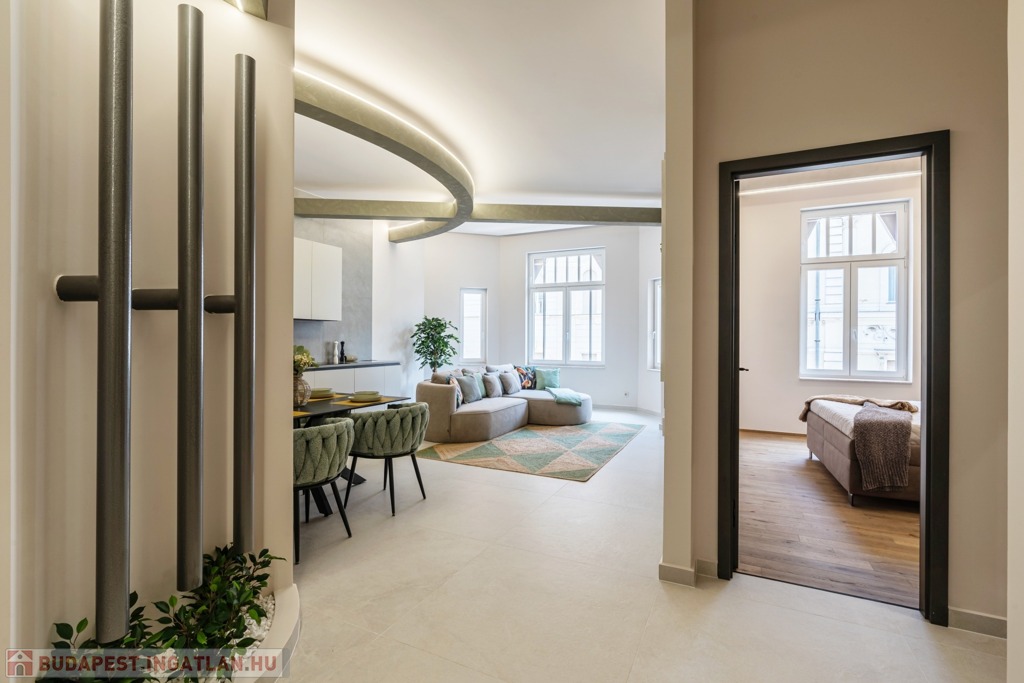 Eladó exkluzív, teljes körűen felújított designlakás a Ráday utcában – bútorozottan, azonnal költözhetően.