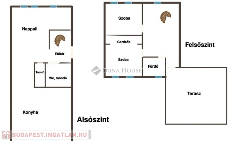 Az amerikai konyhás nappaliból egy kényelmes és dizájnos lépcső vezett a felső szintre, ahol két hálószoba, gardróbbal és fürdővel várja az új tulajdonost. A tetőterasz nem csak pihenésre, vendégek fogadására, de akár kénylemes otthoni munkára is alkamas.