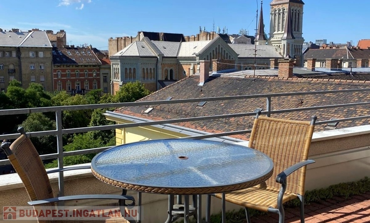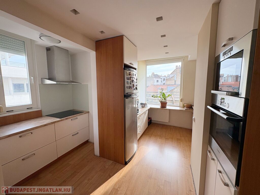 For sale: a one-of-a-kind, 6th-floor, 3-room apartment with exceptional features in the most sought-after part of the 9th District, right next to the newly renovated Bakáts Square. This property is a true rarity in the downtown market: situated above the surrounding houses, it offers total privacy and intimacy without being overlooked by neighbors.