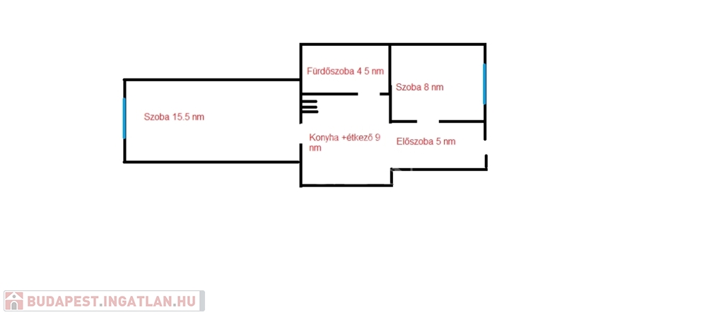 A konyha-étkezőből nyílik a 15.5 nm-es nagyobb szoba, kilátása utcai.