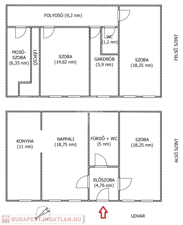 -Belmagasság: 5,2 m, tágas, levegős térérzet - alsó szint: 2,55 m, felső szint: 2,18 m.