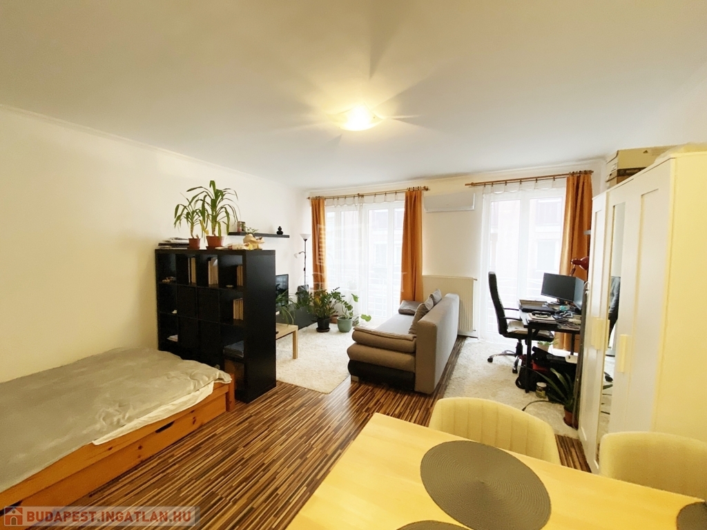 A lakás jelenlegi kialakítása tágas amerikai konyhás nappali, azonban a két ablaknak köszönhetően könnyedén 1+1 félszobássá alakítható, így saját otthonnak és befektetésnek is kiváló választás.