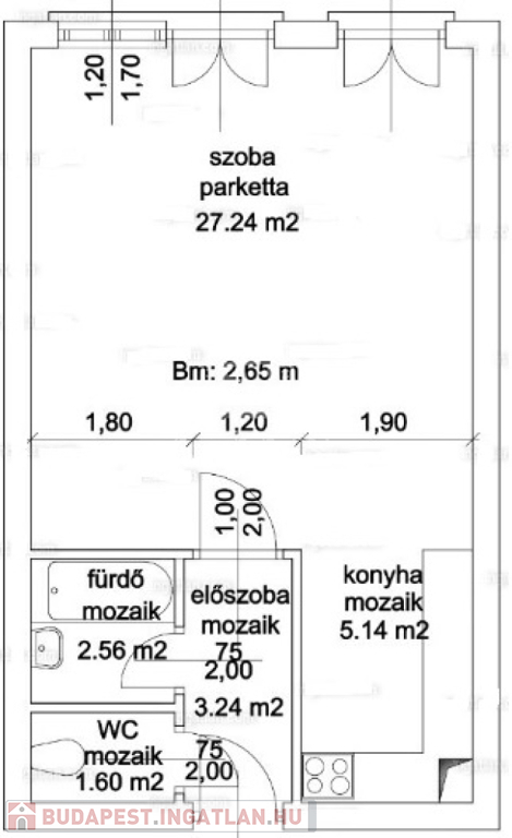 A praktikus elrendezésű ingatlanban külön fürdőszoba, külön WC, valamint előszoba található.