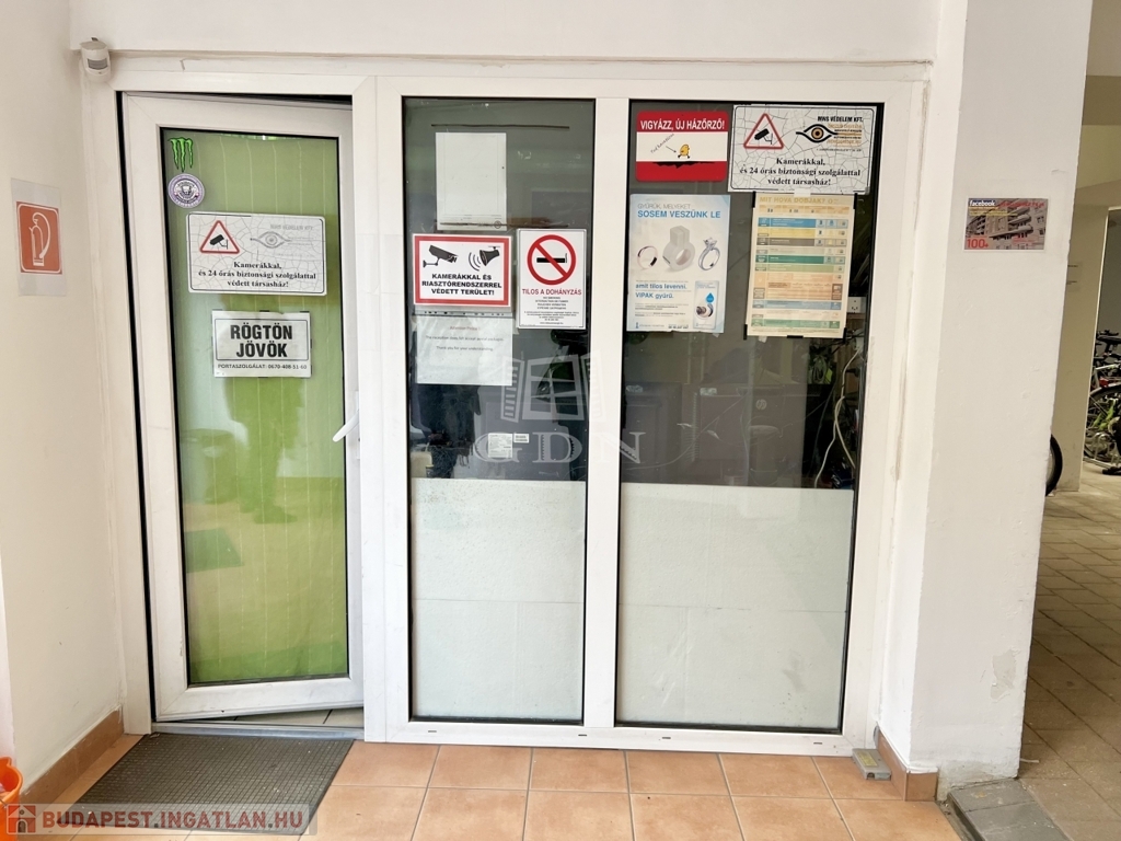 A konyhában konyhabútor és elektromos tűzhely található; az előszobában pedig újszerű, fogasokkal és fiókos elemmel ellátott szekrény kapott helyet. A bútorok, a függönyök és a tűzhely a vételár részét képezik, de kérésre a lakás kiürítve kerül átadásra.