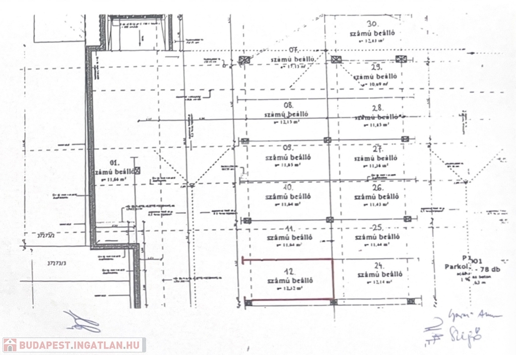 Az ingatlanhoz tartozik egy 12 m²-es gépkocsi-beálló a -2. szinten lévő teremgarázsban, elektromos kapun keresztüli bejárással. A beálló 9 900 000 Ft-ért, külön helyrajzi számmal, de csak a lakással együtt eladó.