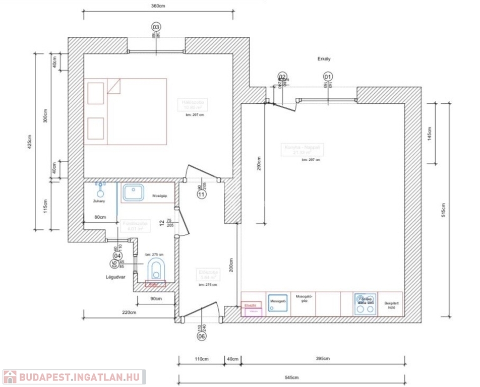 A lakás a harmadik emeleten helyezkedik el, és 38 négyzetméter alapterületű.
