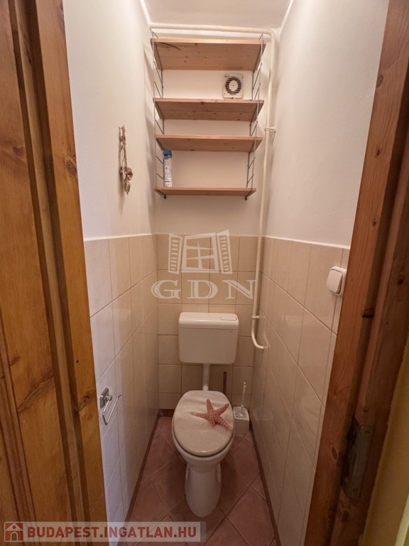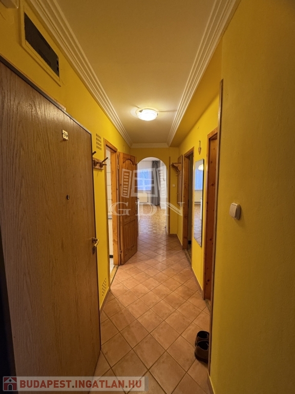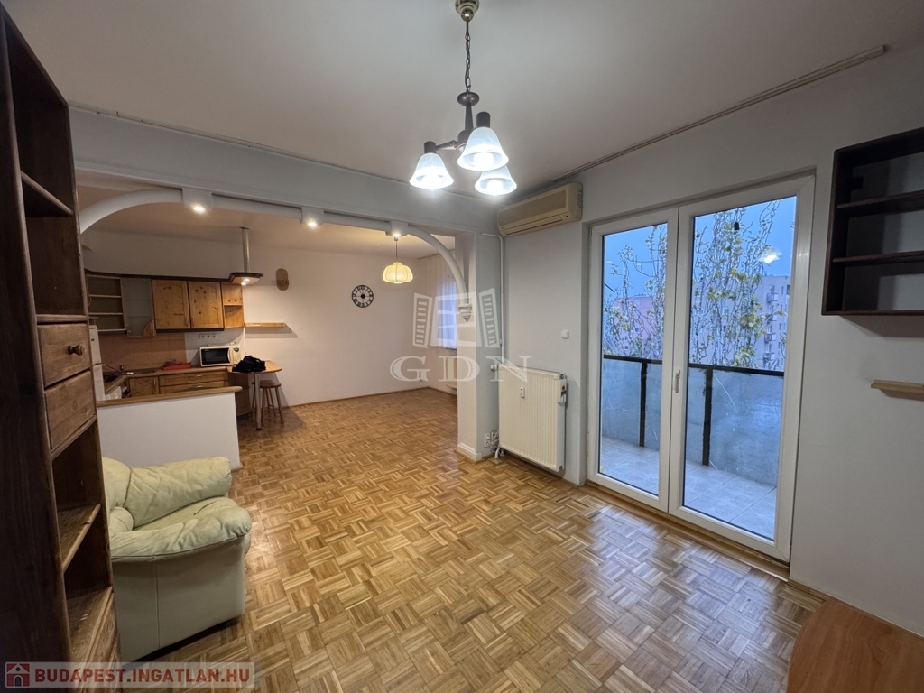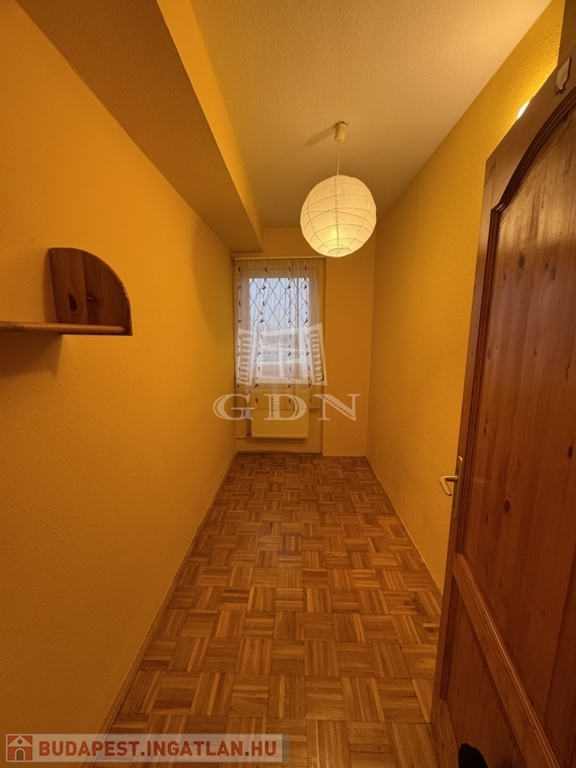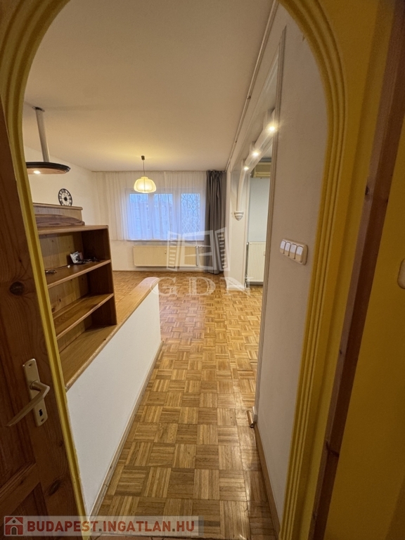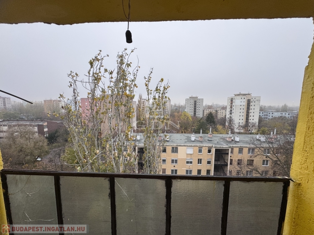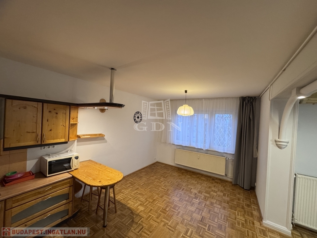 A lakás hetedik emeleti nyugalma felülről mutatja meg a város egyik legszebb arcát: fás, barátságos házak, a távolban a budai dombok – egy olyan panoráma, amitől minden nap jobb kedvvel indulsz el otthonról.
