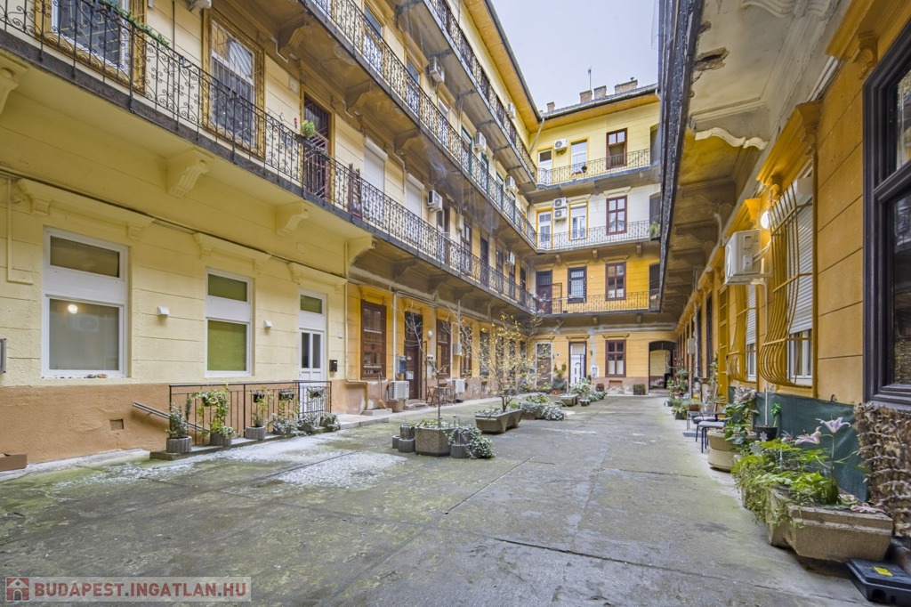 52 m2-es plusz 11 m2 galériás, második emeleti, cirkófűtéses lakás eladó Belső-Ferencvárosban, a Boráros tértől 2 percre gyalog, a IX. kerületi Ráday utcában. A 3.7 méteres belmagassághoz jól illik a 30 m2-es nappaliban elhelyezett galéria, mely alatt kényelmesen maradt 2 méter hely. Minden fogyasztás egyedi mérésű, a cirkó 2 évvel ezelőtt lett beszereltetve és az egész rendszer újonnan lett kiépítve (radiátorok és csövezések is). A nappali utcafronti, délkeleti fekvésű, a dupla nyílászáró belső oldali üvegei hőszigeteltre lettek cserélve. A közlekedő elején egy klíma is kiépítésre került, mely az egész lakást képes megfelelő hőmérsékletűre hűteni nyáron.