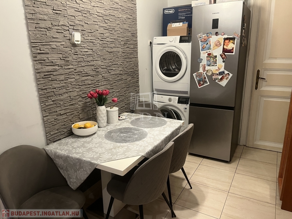 In one of the most popular parts of Budapest's 9th district, in the corner of Márton Street and Üllői Road, a 63 m² flat is for sale on the 3rd floor of a well-maintained condominium with a lift.