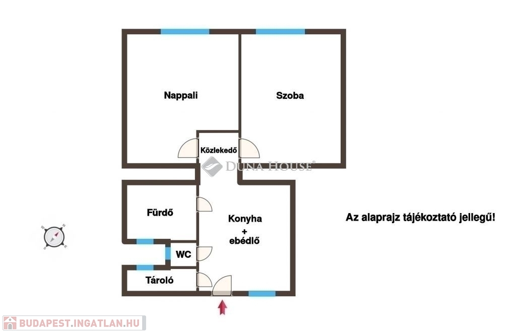 - 2 tágas, utcára néző szoba, ÉNy-i tájolással