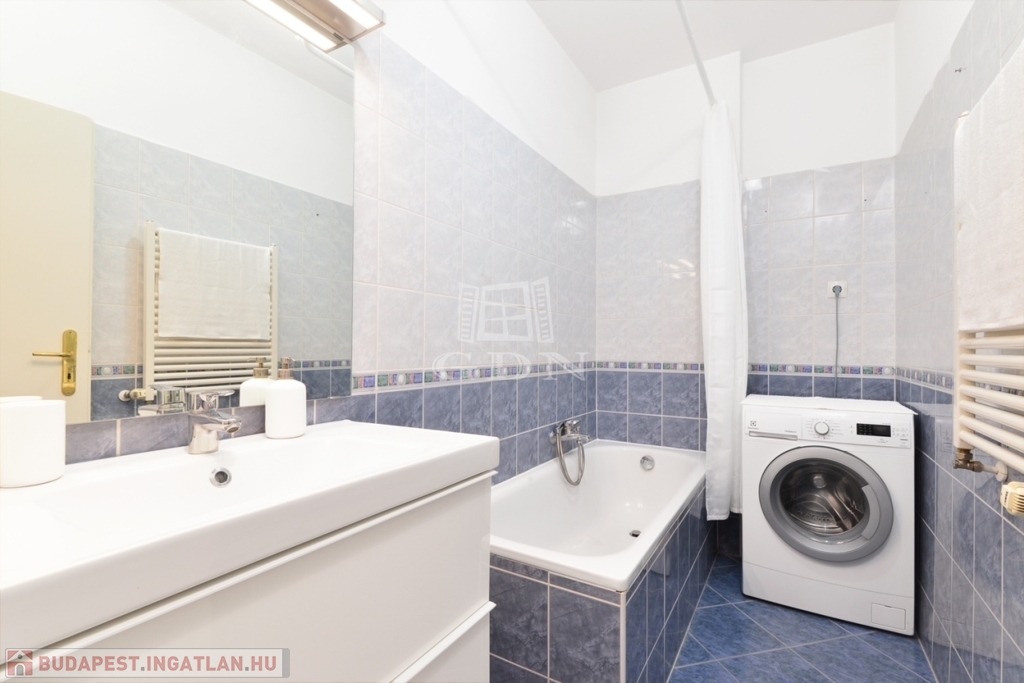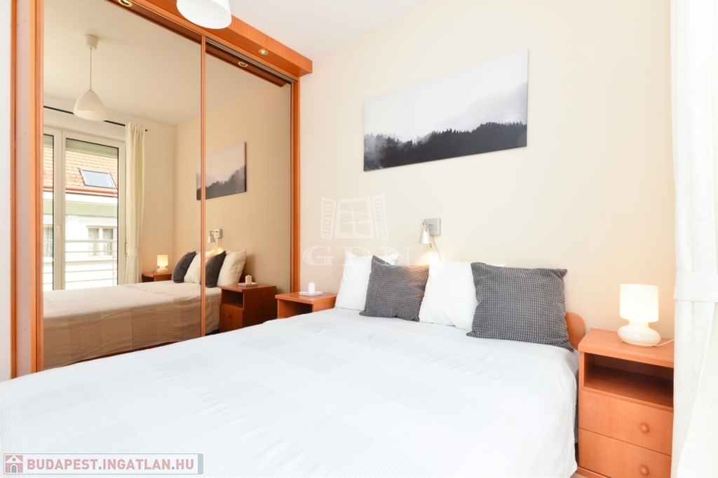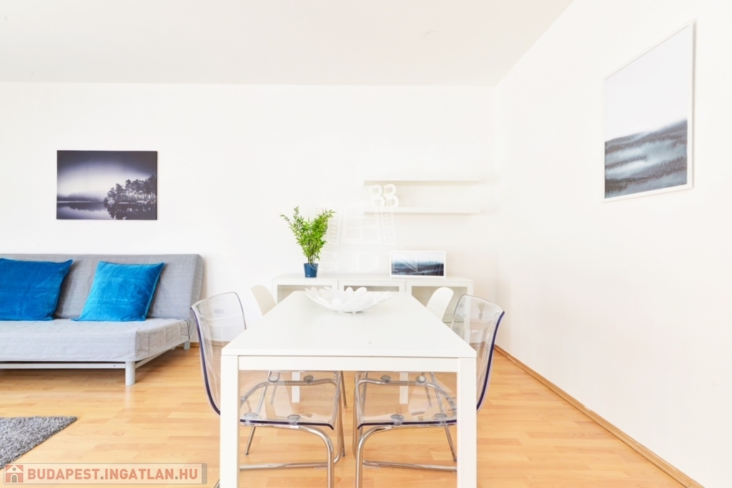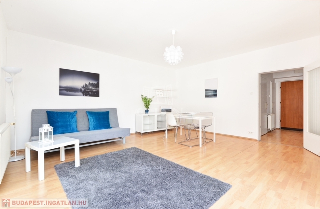 A lakás újszerű állapotú, gépesített, IKEA bútorokkal berendezett, légkondicionálóval felszerelt. Az 54 m2-es alapterület kiváló elosztású, fiatal pároknak vagy egyedül költözőknek is ideális. Az előszobából nyílik a tágas nappali, a konyha és a hálószoba, illetve külön fürdőszoba és WC került kialakításra.
