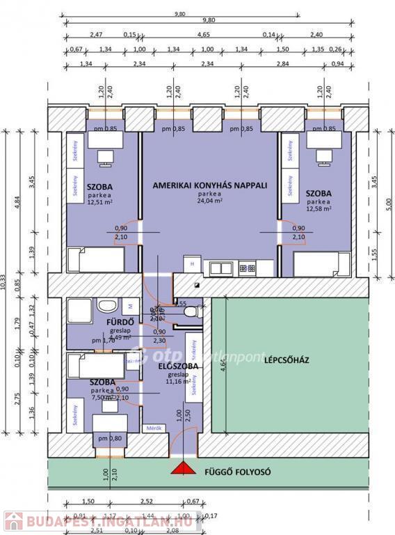 -72 nm-es téglaépítésű lakás