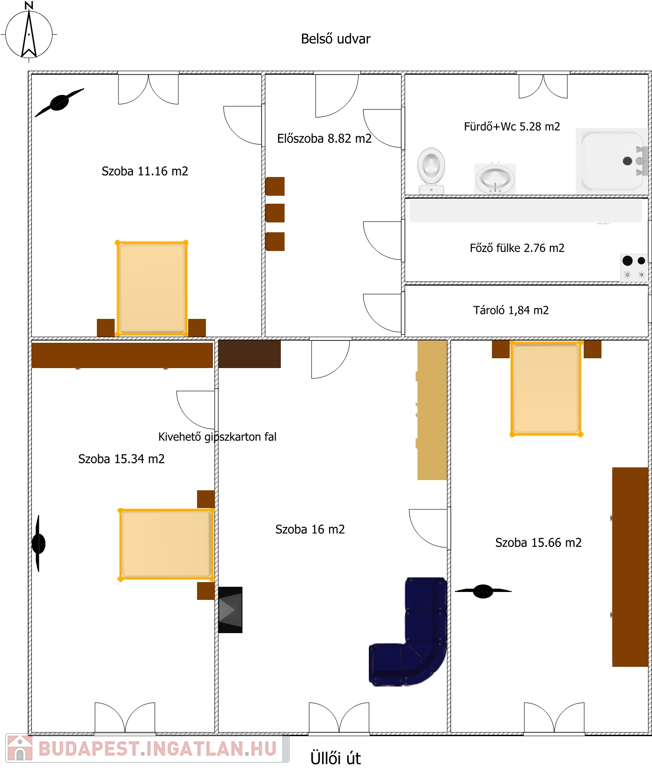 A szobák méretei: 1.szoba: 11.16m2,