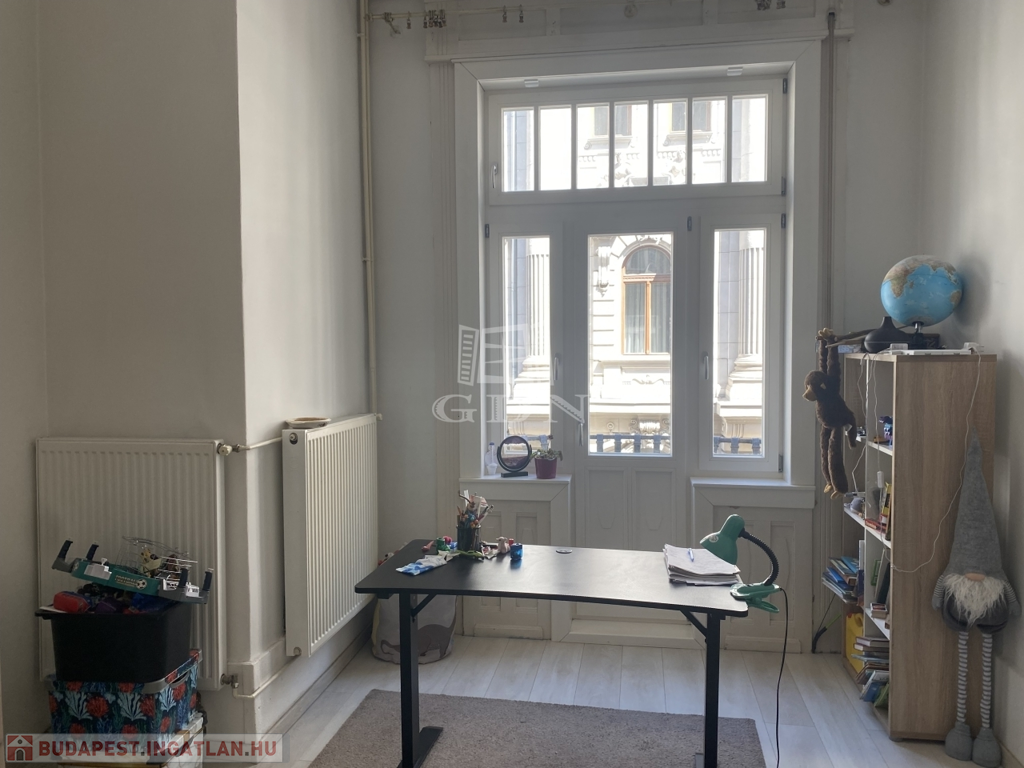 A 66 nm-es erkélyes lakás a liftes ház 1.emeletén található. Közepes állapotú, az utolsó felújítás 2019-ben volt. Belmagasság 3.49m, nem galériázott. A nyílászárók új,műanyagok. A fűtést és meleg vizet a gázcirkó szolgáltatja.