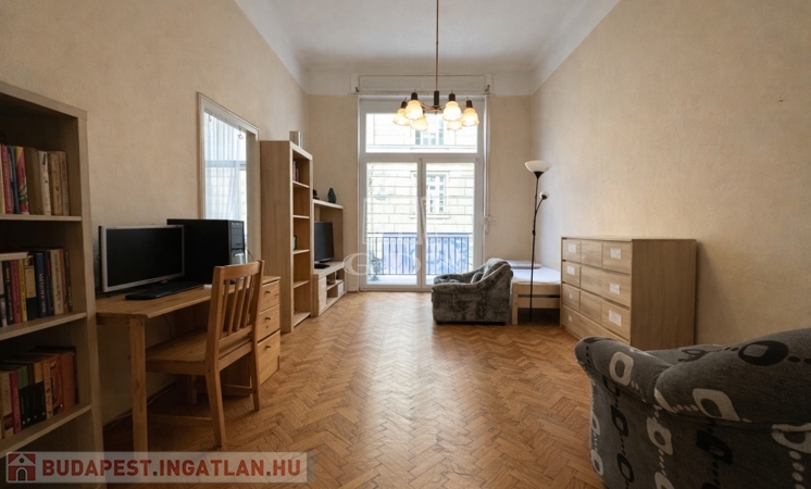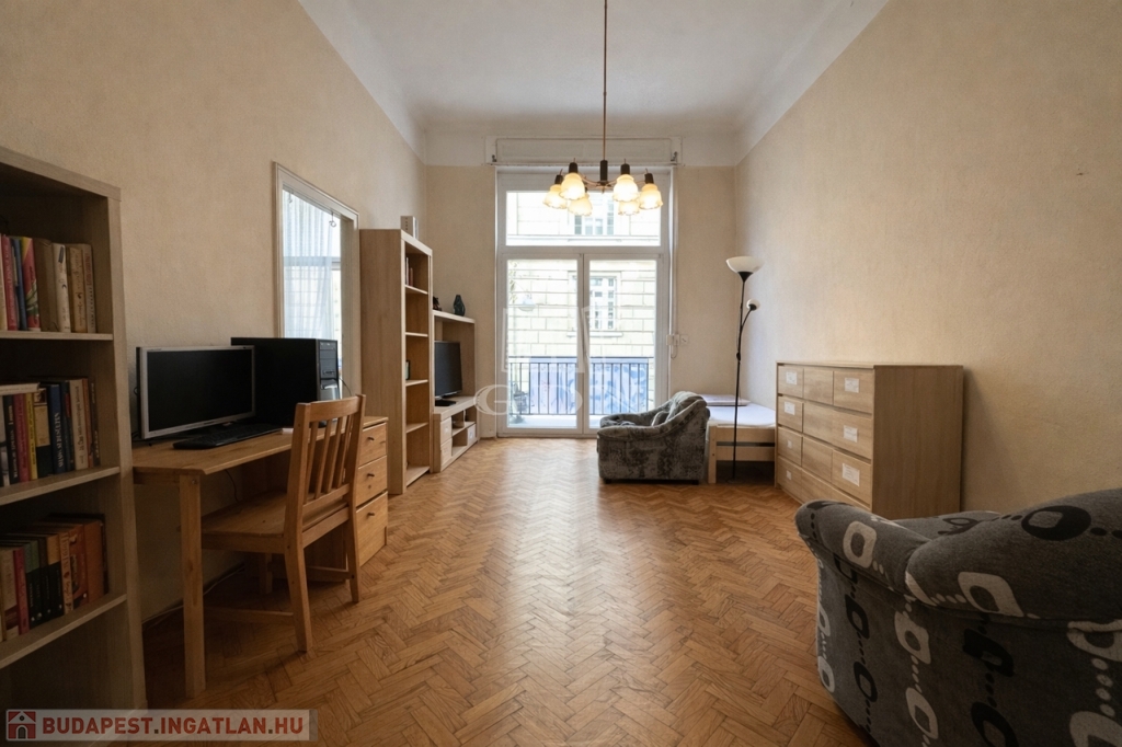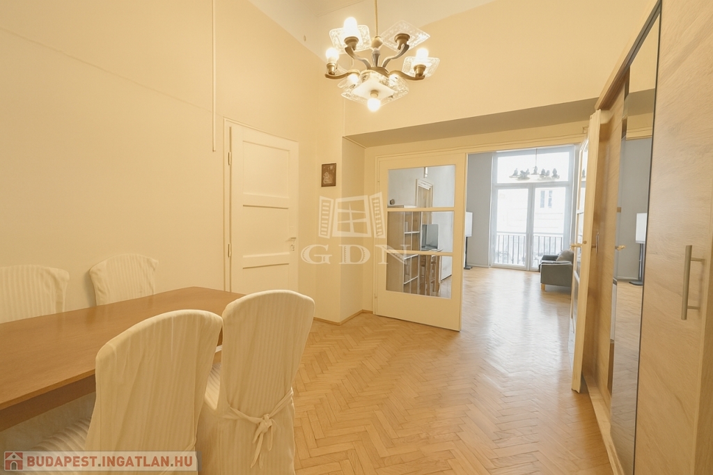 Két utcányira a Parlamenttől, egy utcányira az Olimpia parktól kínáljuk megvételre ezt az 1. emeleti, 68 m²-es, 2 szoba + hallos lakást Budapest 5. kerületének egyik legpatinásabb utcájában.