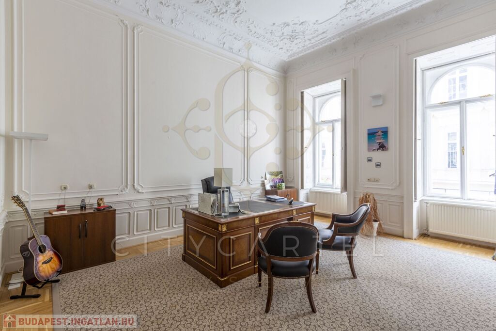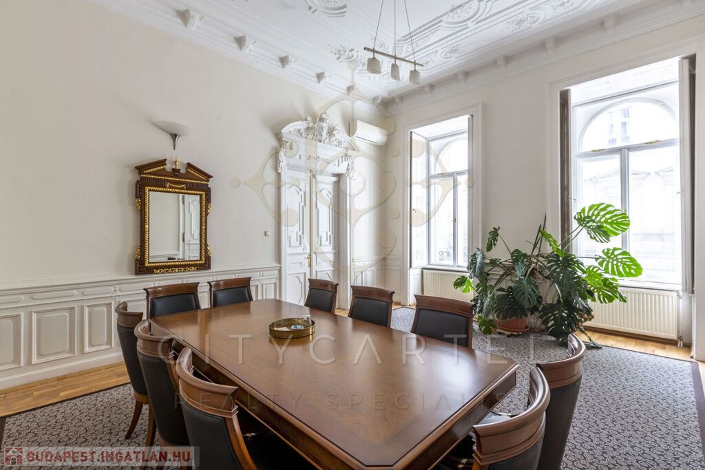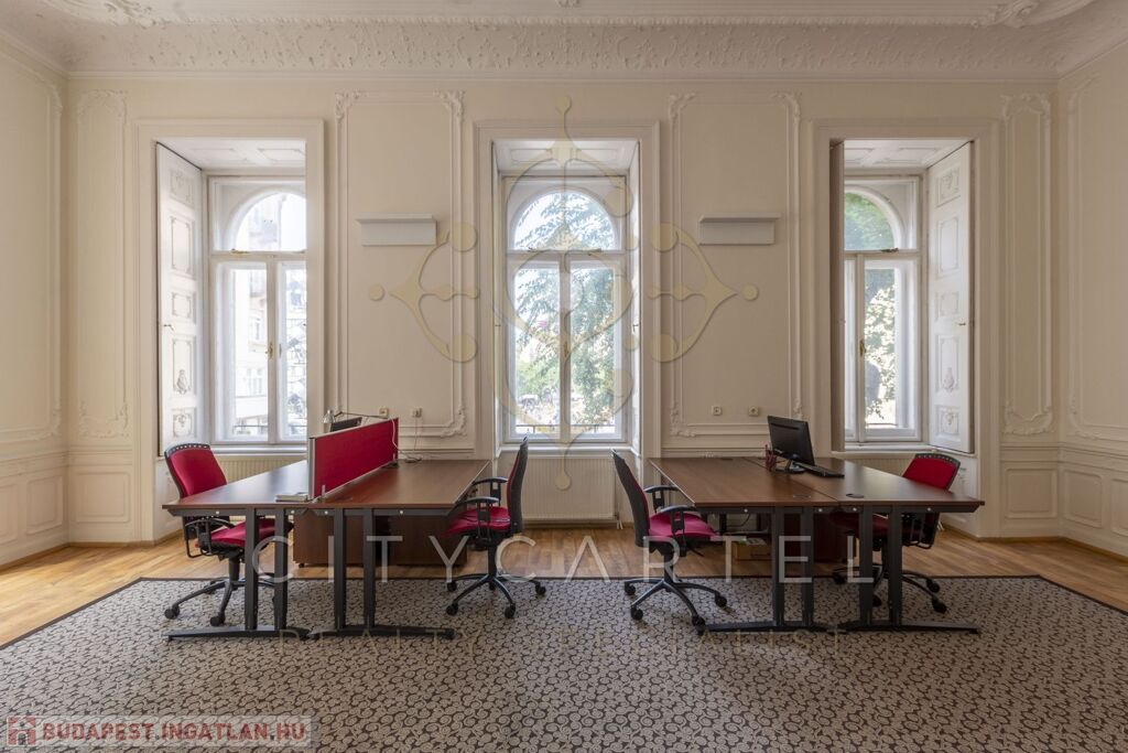 Az első emeleti, impozáns ingatlan rendkívül világos és tágas, kifinomult részletekkel díszített belső terekkel rendelkezik. Körbejárhatósága és két külön bejárata lehetőséget biztosít akár két szeparált iroda kialakítására is.
