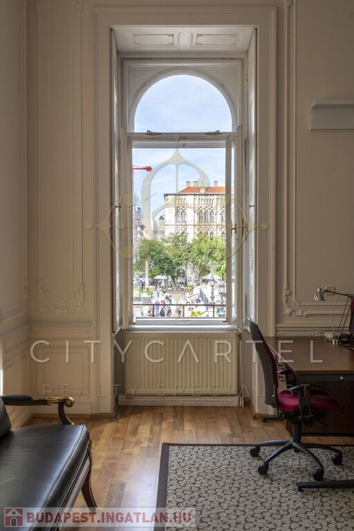 Budapest egyik legpatinásabb részén, az V. kerület szívében, a Hercegprímás utcában, közvetlenül a Szent István Bazilikára néző, elegáns liftes épületben páratlan adottságokkal rendelkező, 299 nm-es, 6 szobás, nagy belmagasságú saroklakás.