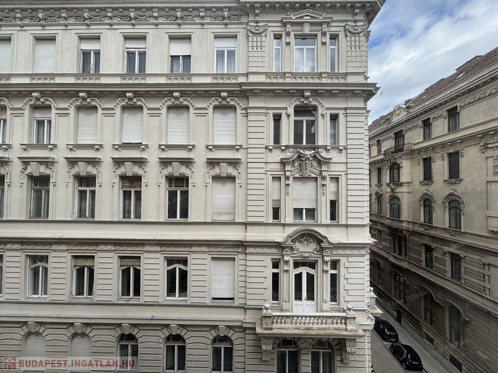 Az ablakok az Irányi utcára néznek, és csodálatos kilátás nyílik az Erzsébet hídra, de a Duna és a Gellért-hegy is látszik.