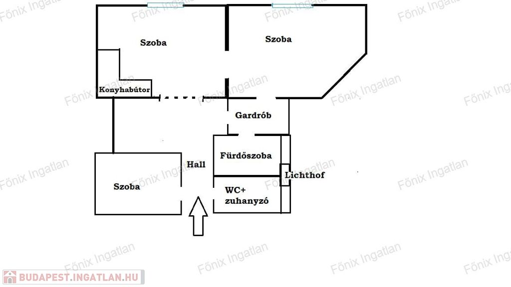Jelenlegi elosztása: tágas előszoba,