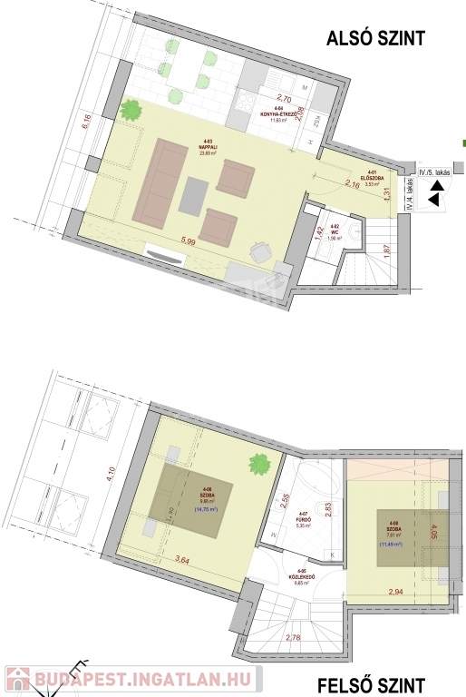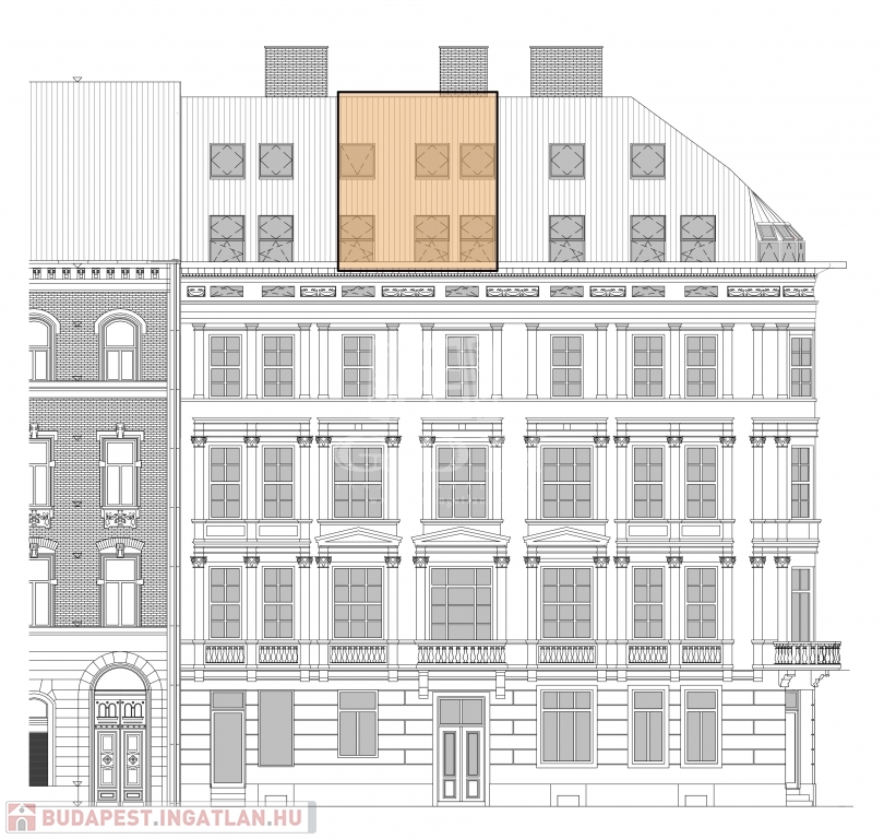 V. kerület Belvárosi részén, napfényes, magasemeleti luxus lakások kerülnek kialakításra a kivitelezéssel párhuzamosan pedig az épület korhűen megújul és egyidejűleg modern felvonó kerül beépítésre. Összesen 105m2 lakóterülettel rendelkezik ez a remek kéthálószobás, tetőteraszos ingatlan. A bejárati szinten a konyha nappali mellett egy vizes helyiség kerül kialkaításra, a hálószobák az élettértől jól elszeparálva az emeleten kapnak helyet a mellékhelyiségekkel, innen jutunk fel a privát 28m2-es tetőteraszra mely kizárólag ennek a lakásnak a kényelmét biztosítja. Az előrelátó tervezésnek köszönhetően nem lakószobából megközelíthető a tetőterasz így valóban szerves része lehet a lakásnak. A mellékelt látványtervek csupán egy, a számtalan megvalósítható lehetőség közül, jelen stádiumban még 100%-ban lehetséges a leendő tulajdonosok elképzeléseinek megvalósítása.