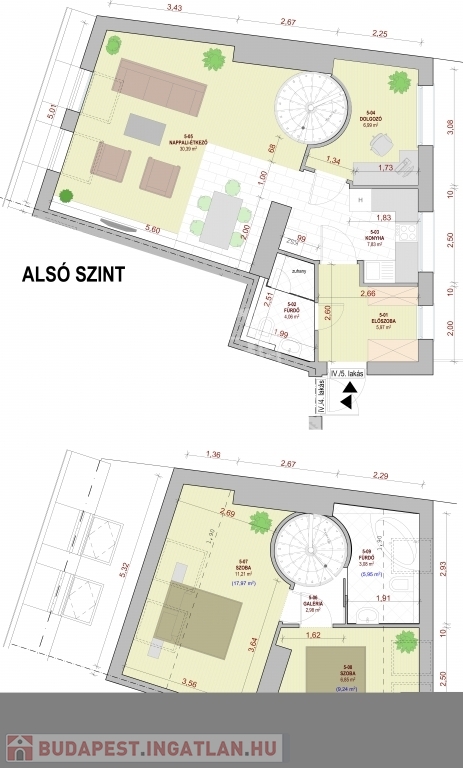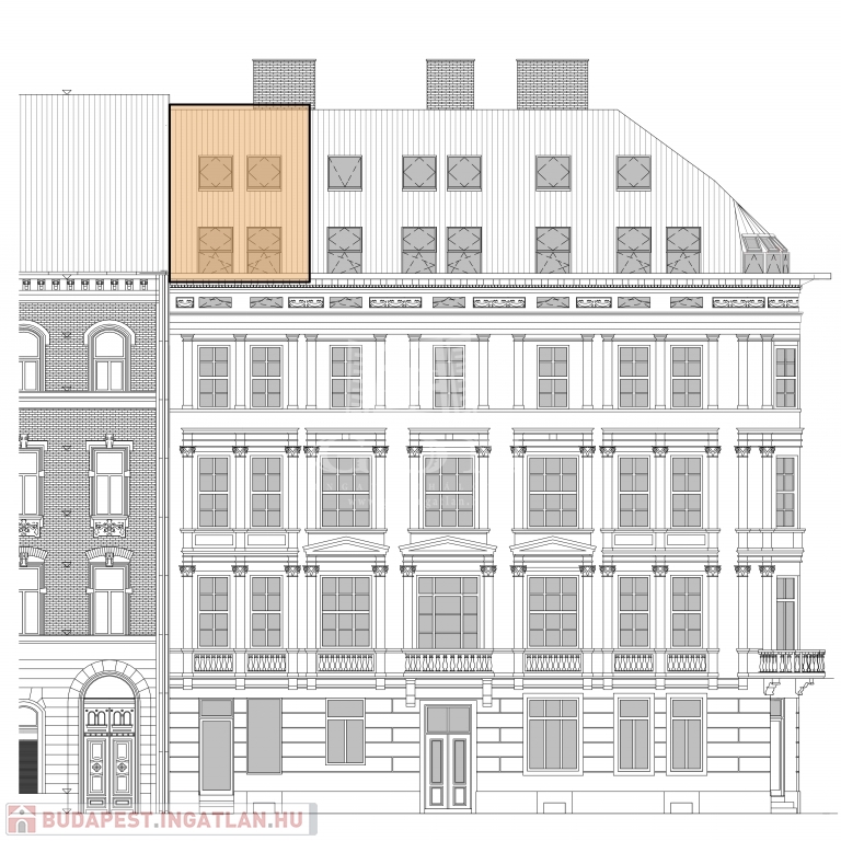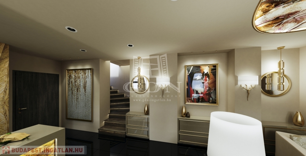 V. kerület Belvárosi részén, napfényes, magasemeleti luxus lakások kerülnek kialakításra a kivitelezéssel párhuzamosan pedig az épület korhűen megújul és egyidejűleg modern felvonó kerül beépítésre. Összesen 121m2 lakóterülettel rendelkezik ez a remek kéthálószobás, tetőteraszos ingatlan. A bejárati szinten a konyha, dolgozó és nappali mellett egy vizes helyiség kerül kialkaításra, a hálószobák az élettértől jól elszeparálva az emeleten kapnak helyet a mellékhelyiségekkel, innen jutunk fel a privát 30m2-es tetőteraszra mely kizárólag ennek a lakásnak a kényemét biztosítja. Az előrelátó tervezésnek köszönhetően nem lakószobából megközelíthető a tetőterasz így valóban szerves része lehet a lakásnak. A mellékelt látványtervek csupán egy, a számtalan megvalósítható lehetőség közül, jelen stádiumban még 100%-ban lehetséges a leendő tulajdonosok elképzeléseinek megvalósítása.