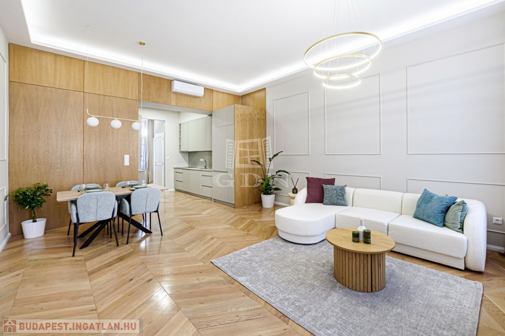 In one of Budapest’s most prestigious streets, Zoltán Street, just steps from the Parliament and Szabadság Square, a bright, 71 sqm, fully renovated and furnished, double-comfort 3-room apartment is for sale on the top (3rd) floor of a well-kept elevator building.
