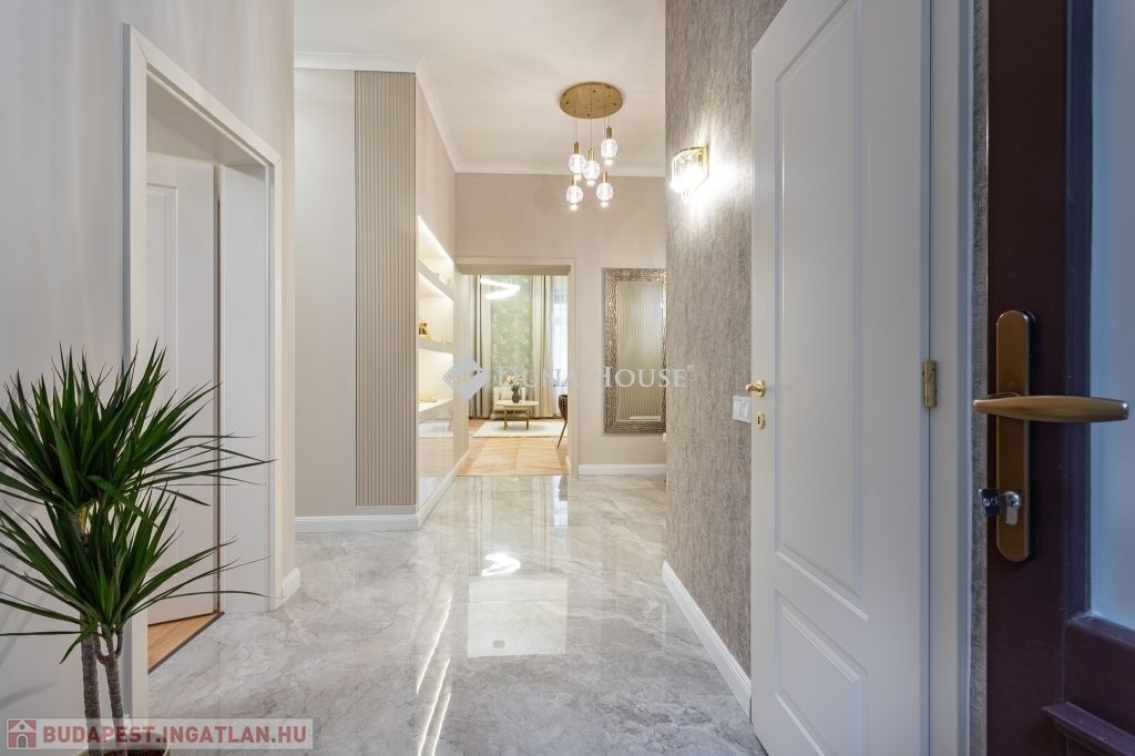 In the heart of Budapests 5th district, just a few steps from the Danube, this 86 m² luxury apartment is now for sale. Featuring a spacious living room, two bedrooms (each with its own bathroom), and a walk-in wardrobe, this home perfectly blends classic grandeur with modern sophistication.