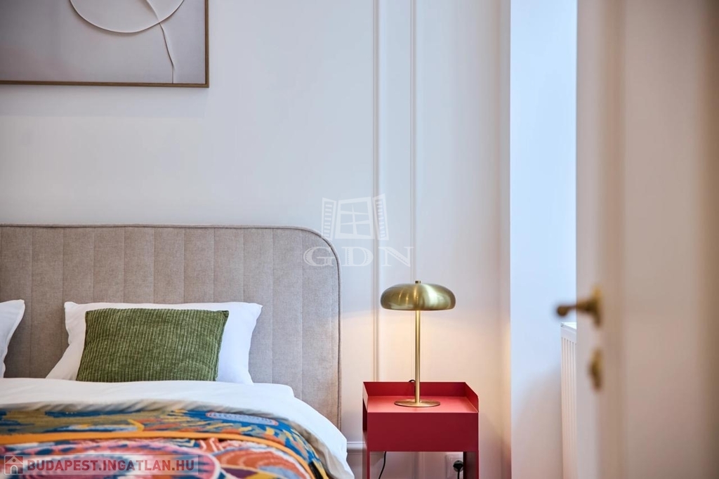 A lakás minden részlete új: modern gépészet, energiahatékony fűtés és hűtés, tölgyfa parketta, designbútorok és minőségi háztartási gépek.