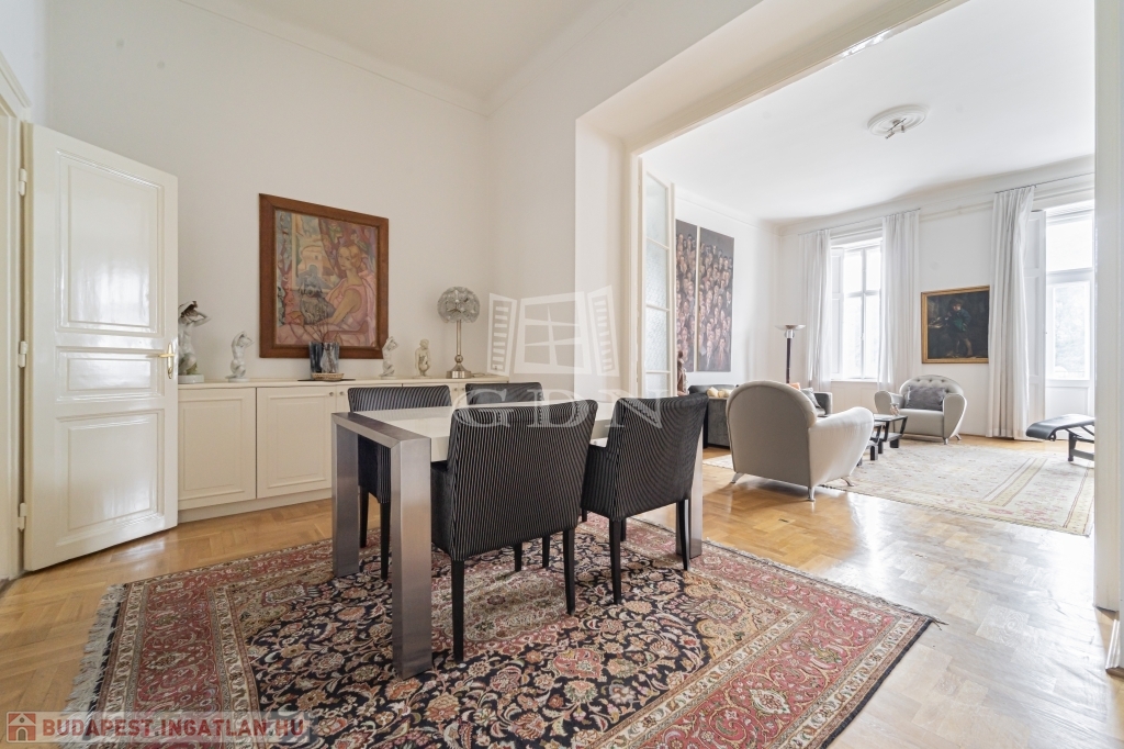 Most megvásárolhat egy darabot a világörökség részéből, és minden reggel az erkélyéről gyönyörködhet a csodás kilátásban. A lakás zárt lépcsőházból megközelíthető. Remek elrendezésnek köszönhetően két hálószobának nincs közös fala, jelenleg is két fürdőszobával rendelkezik. A konyha mellett a hallban került kialakításra az étkező mely egy négy szárnyú ajtó választ el a nappalitól. Négy ablaka néz a Dunára, három pedig a belső frontra. A lakás klimatizált, a kültéri egységek a társasház jóváhagyásával kerültek elhelyezésre. A lakószobákban eredeti, felújított fa parketta található. Ha felújítana, átalakítana ez az ingatlan remek alapot biztosíthat egy három háló szobás lakás kialakítására.